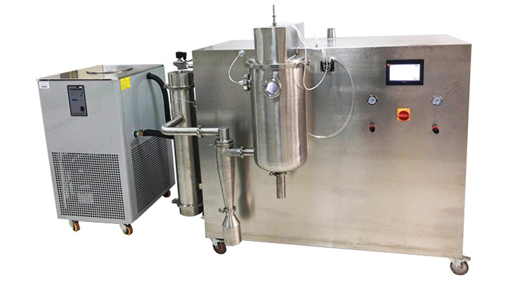 低溫噴霧干燥機由于體積小,占地面積小,且功能強大,開始使用就被多數企業喜愛。小型低溫噴霧干燥機適用于高校、研究所和食品醫藥化工企業實驗室生產微量顆粒粉末,對所有溶液如乳濁液、懸浮液具有廣譜適用性。