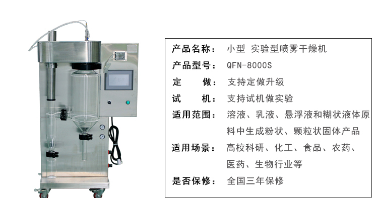 噴霧干燥器原理通過機械作用,將需干燥的物料,分散成很細的像霧一樣的微粒,(增大水分蒸發面積,加速干燥過程)與熱空氣接觸,在快速將大部分水分除去,使物料中的固體物質干燥成粉末。