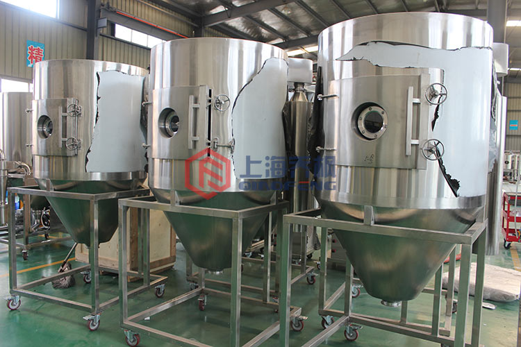 噴霧裝置是離心式噴霧干燥技術(shù)原理在特定物料干燥中的應(yīng)用,也是利用高速離心式霧化器使物料分散成細(xì),與熱空氣充分接觸,完成瞬間干燥,形成粉狀成品的干燥裝置。該干燥設(shè)備是專門用來(lái)解決中藥浸膏和植物提取液的噴霧干燥機(jī),它有效地解決了原LPG高速噴霧干燥機(jī)在中藥浸膏干燥中出現(xiàn)的粘壁、焦化、收粉率低、產(chǎn)量低等問(wèn)題。