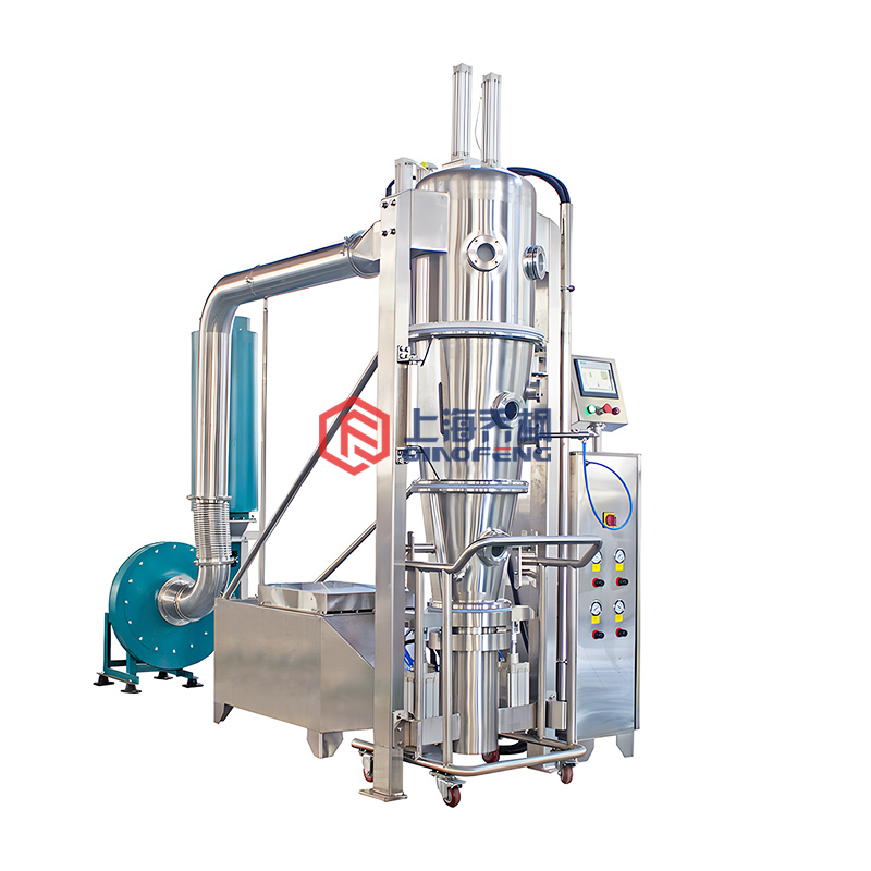 將制粒用粉末或包衣用顆粒(粉)物料投入流化床內(nèi),冷空氣從主機后部加熱室進入,經(jīng)初效.中效過濾.加熱器加熱至進風所需溫度后進入流化床,粉末(顆粒)在床內(nèi)呈流態(tài)化,制粒用粘結劑由輸液泵送入雙流體霧化器,經(jīng)霧化后噴向流化的物料。掩味、防潮、防氧化、防水、隔熱、著色、隔離包衣。