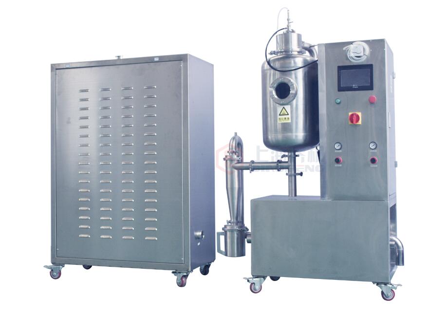 低溫噴霧干燥機(jī)適用于對(duì)熱敏感性物的干燥如生物制品、生物農(nóng)藥、酶制劑等,因所噴出的物料只是在噴成霧狀大小霧滴時(shí),才受到干燥風(fēng)系統(tǒng),故只是瞬間受熱,能保持這些活性材料在干燥后仍維持其活性成份不受破壞。