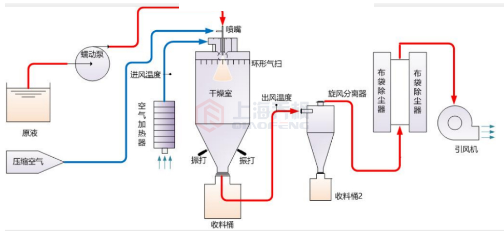 中藥浸膏噴霧干燥機裝置是離心式噴霧干燥技術在特定物料干燥中的應用,也是利用高速離心式霧化器使物料分散成霧狀,與熱空氣充分接觸,完成瞬間干燥,形成粉狀成品的干燥裝置。
